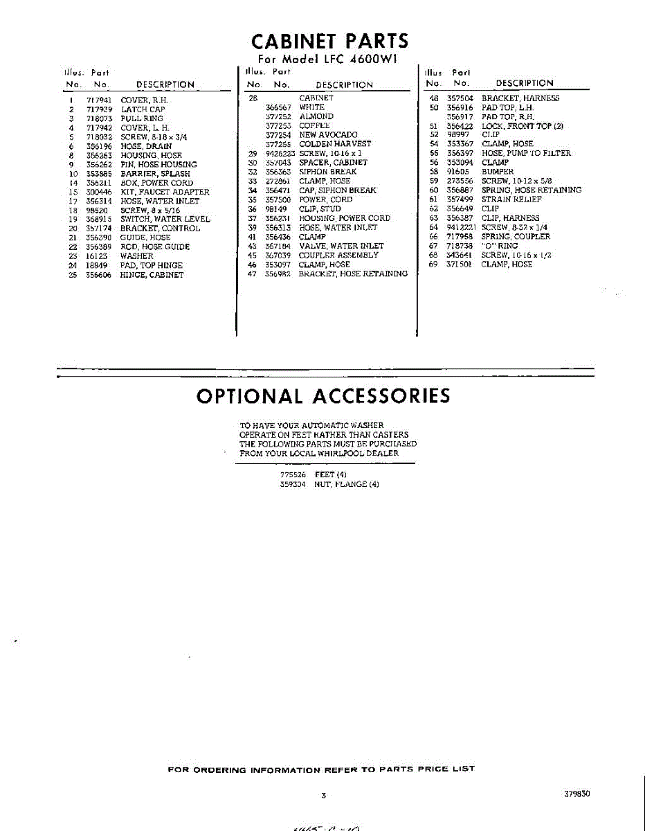 Parts for Whirlpool LFC4600W1: 03 - Section Parts