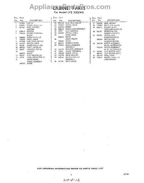Parts for Whirlpool LFE3000W0: 03 - Section Parts