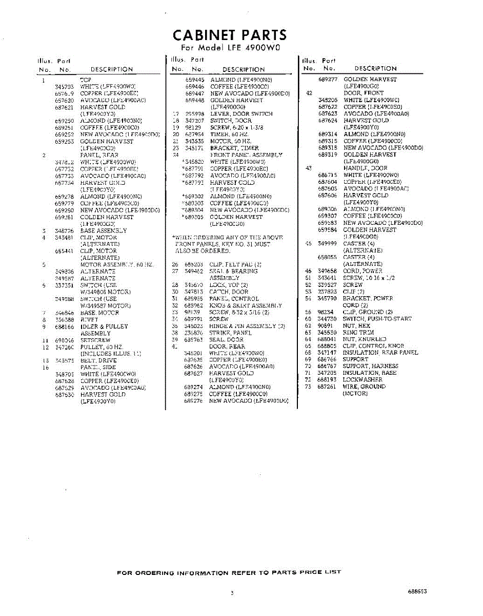 Parts for Whirlpool LFE4900W0: 03 - Section Parts