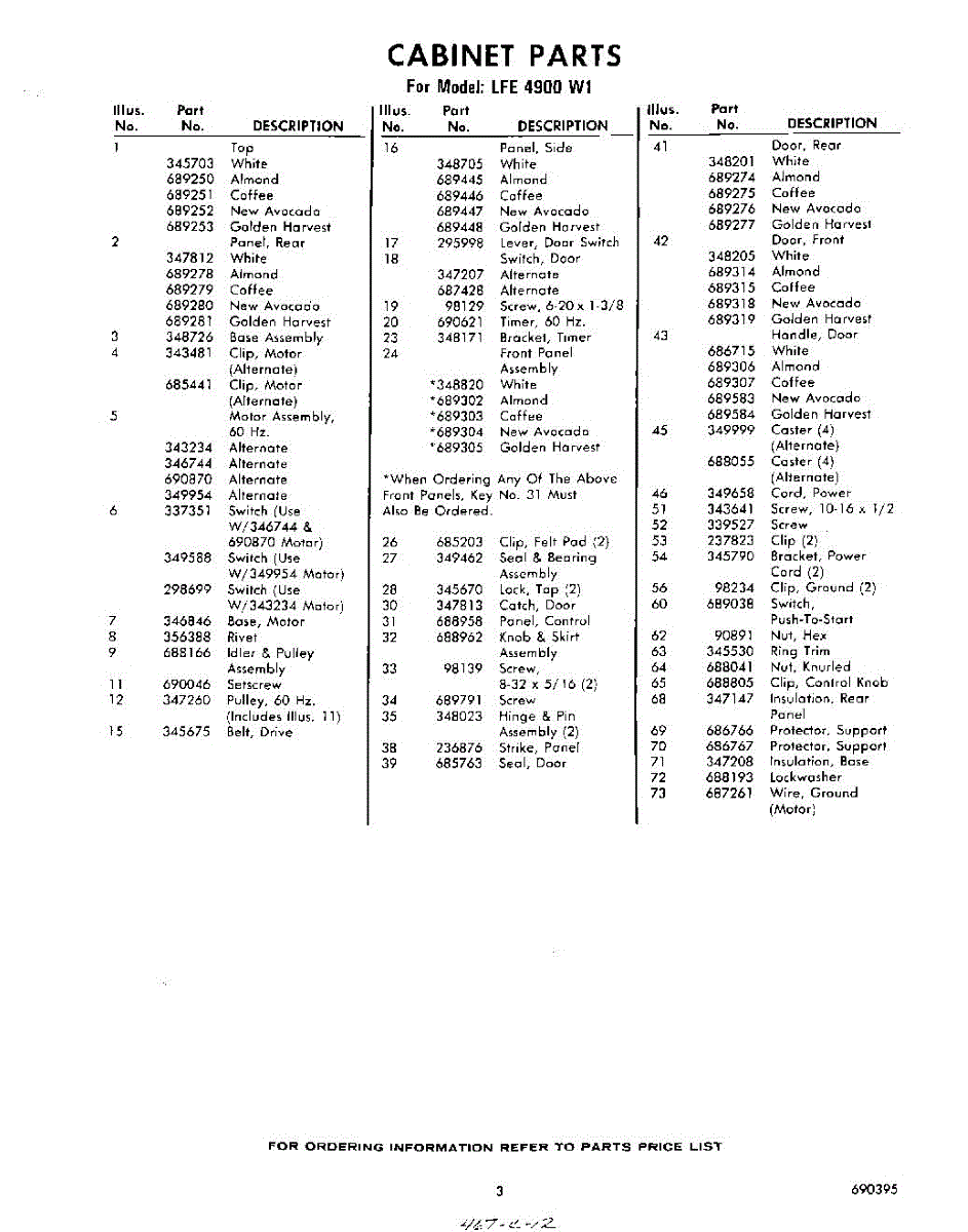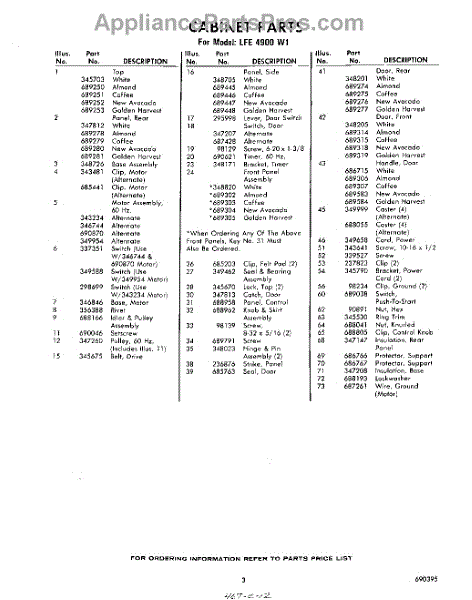 Parts for Whirlpool LFE4900W1: 03 - Section Parts