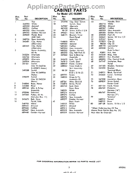 Parts for Whirlpool LFE4930W1: 03 - Section Parts