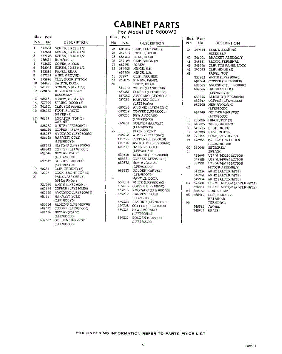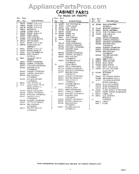 Parts for Whirlpool LFE9800W0: 05 - Section Parts