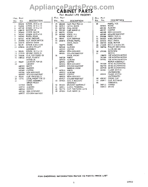 Parts for Whirlpool LFE9800W1: 05 - Section Parts