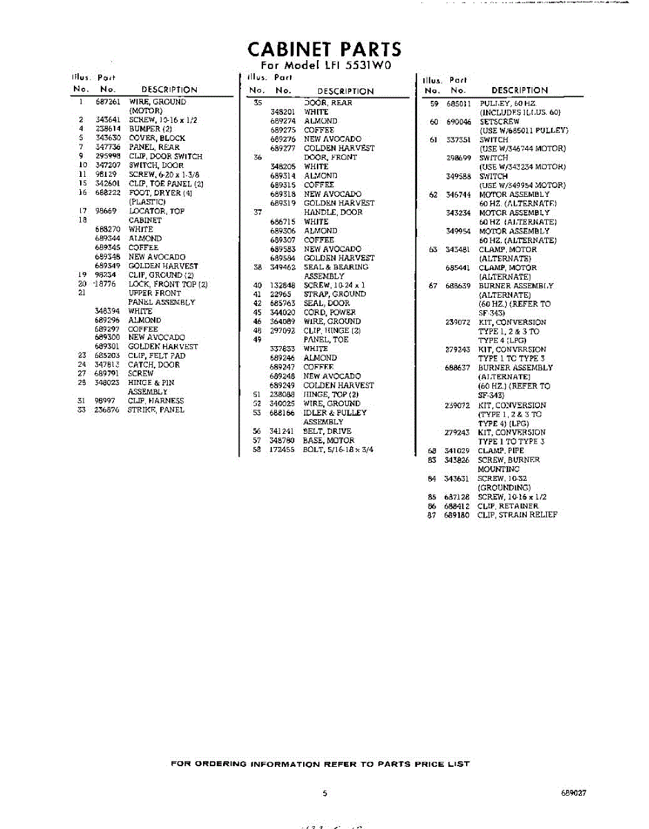 Parts for LFI5531W0