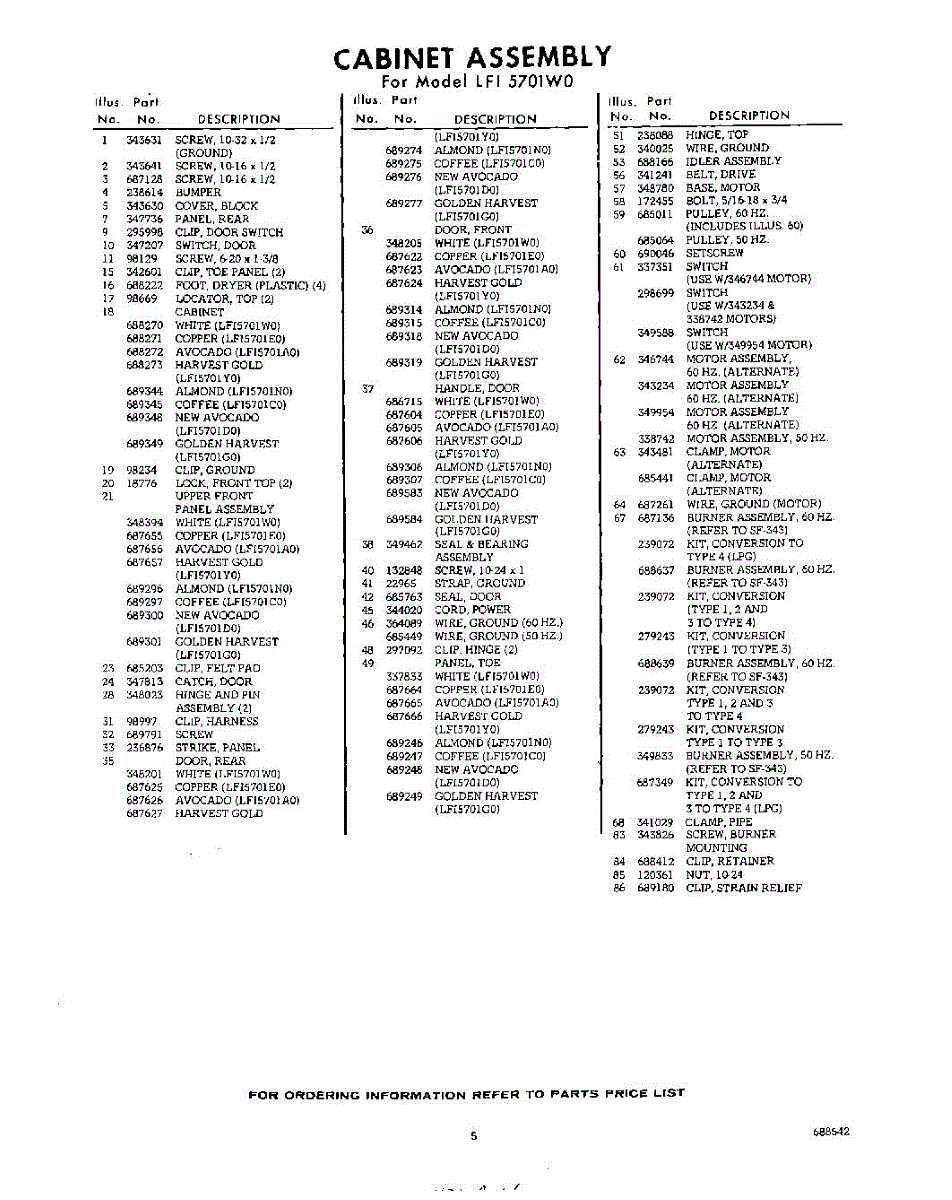 Parts for Whirlpool LFI5701W0: 05 - Section Parts
