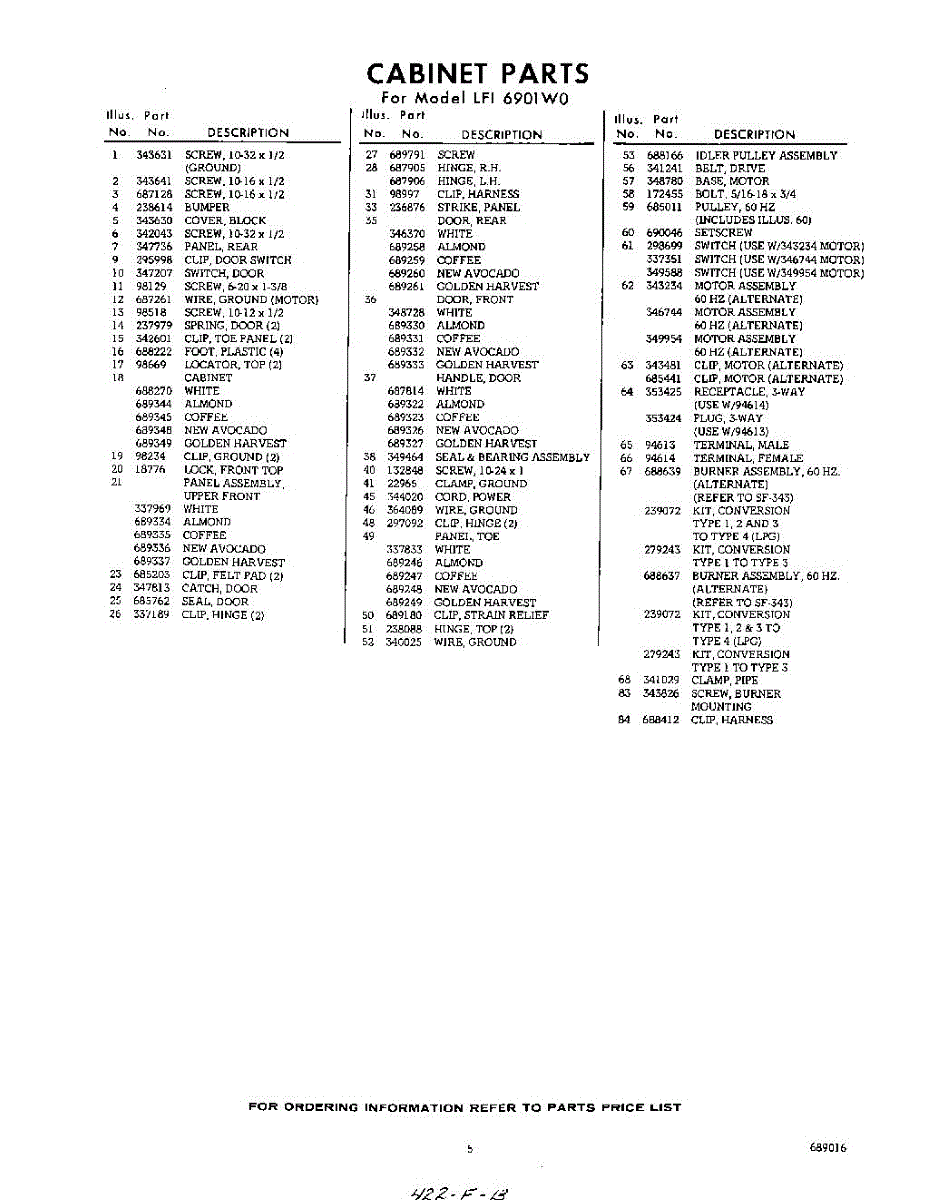 Parts for LFI6901W0