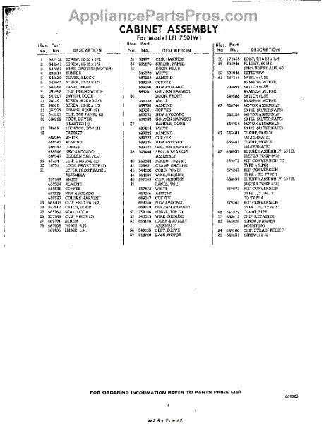 Parts for Whirlpool LFI7501W1: 03 - Section Parts
