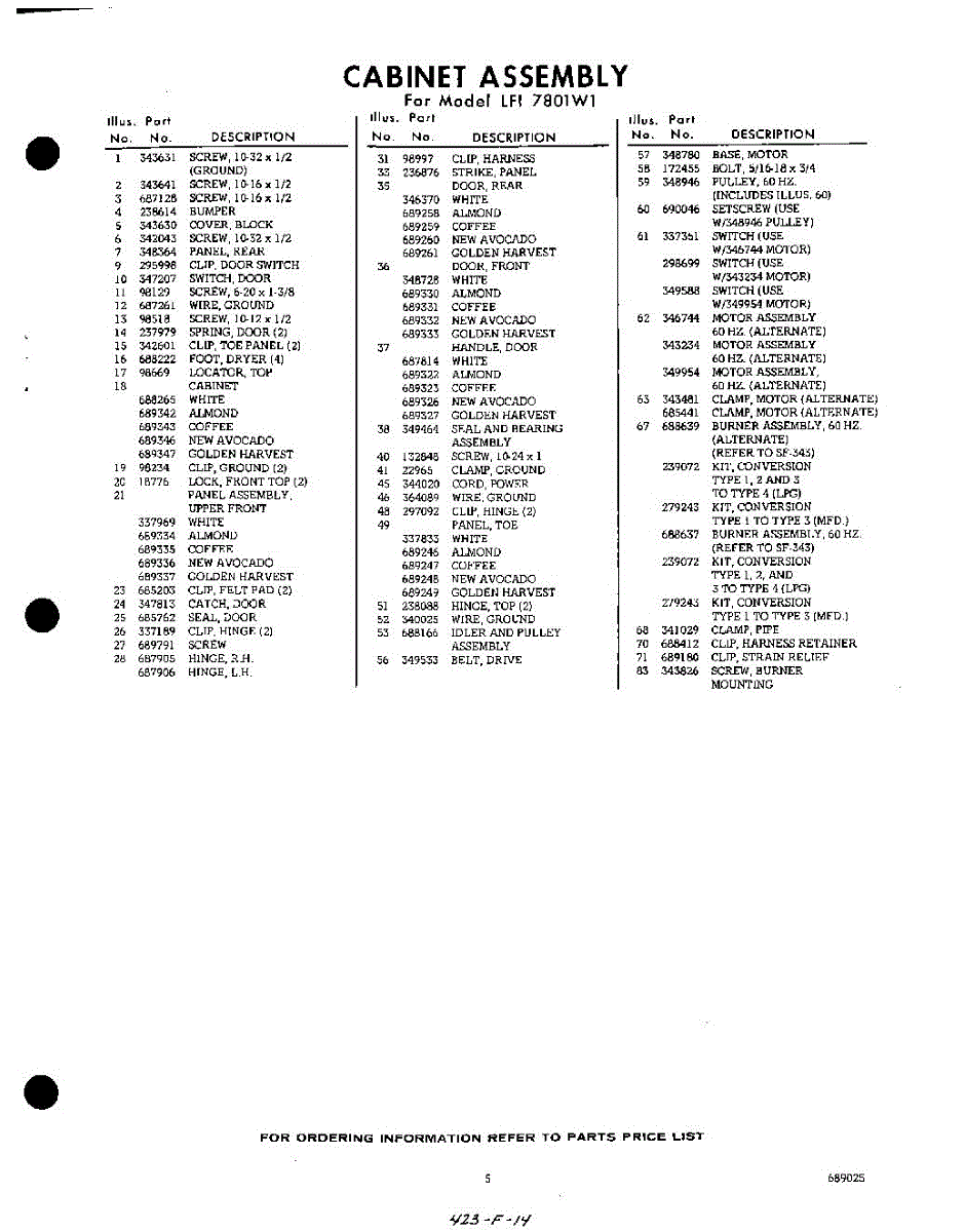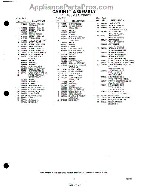 Parts for LFI7801W1