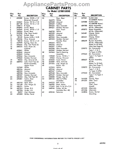 Parts for LG7801XKW0