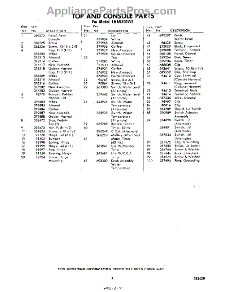 Parts for Whirlpool LHA5300W2: 07 - Section Parts