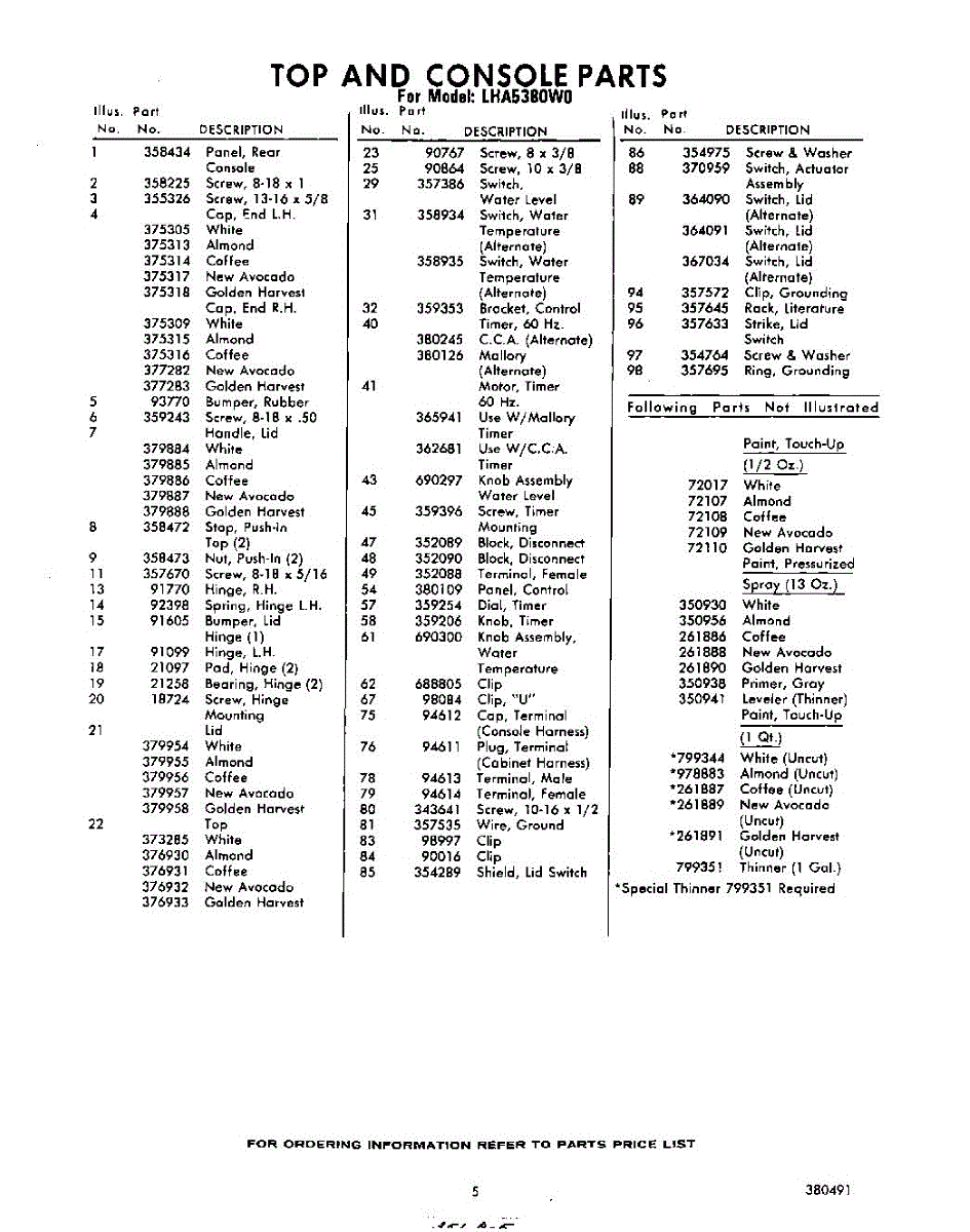 Parts for Whirlpool LHA5380W0: 05 - Section Parts