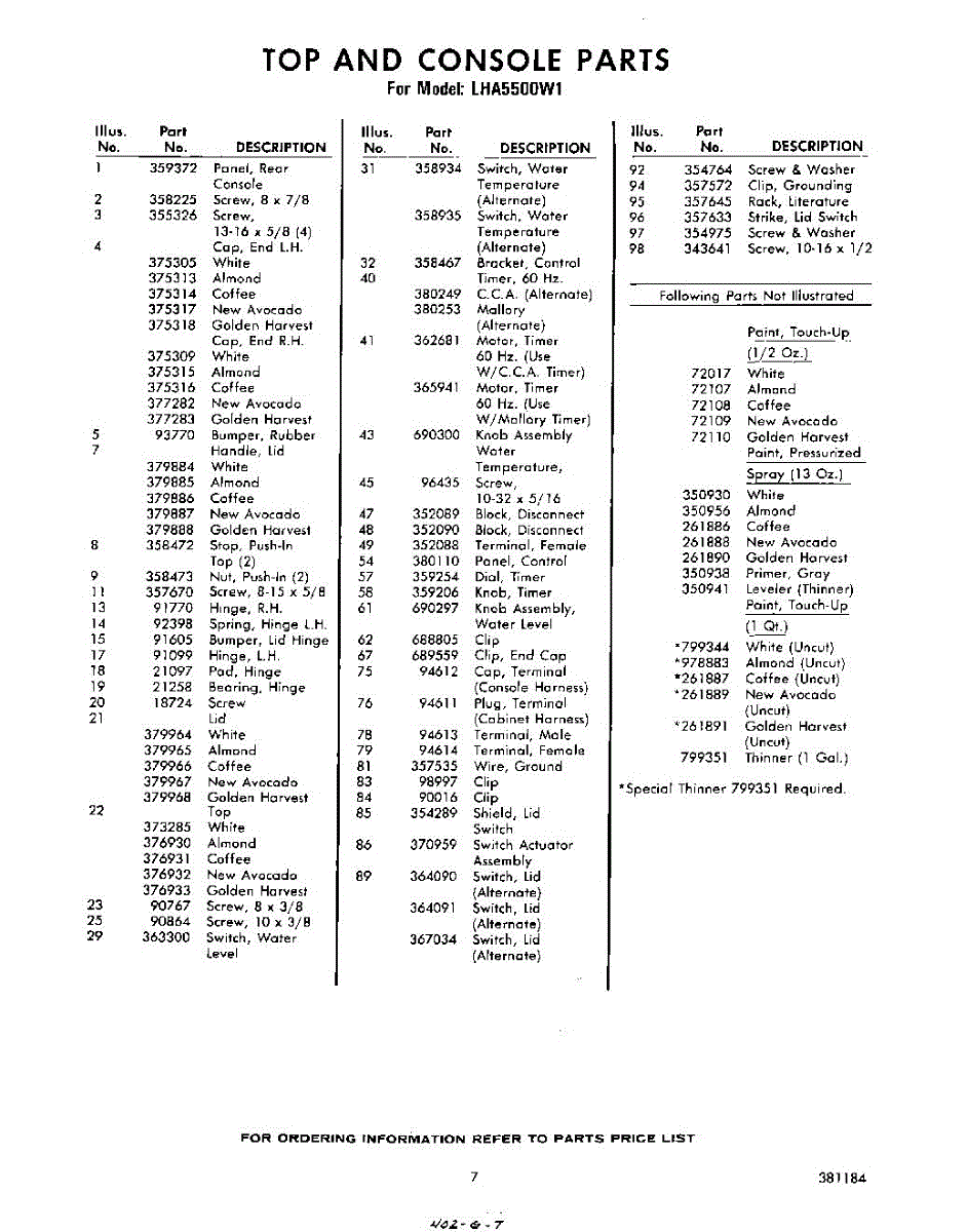 Parts for Whirlpool LHA5500W1: 07 - Section Parts