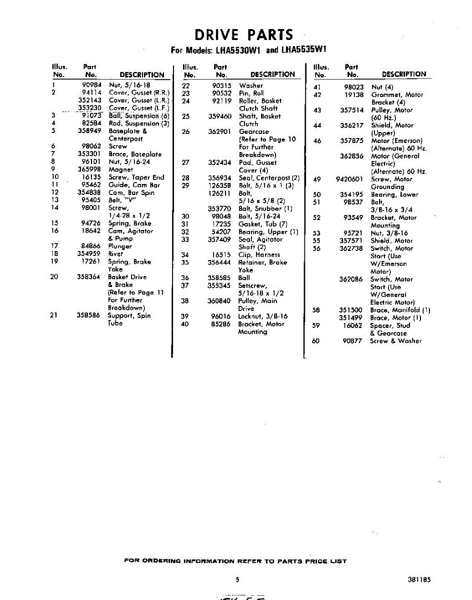 Parts for Whirlpool LHA5530W1: 05 - Section Parts