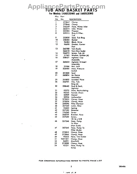 Parts for Whirlpool LHA5535W0: 03 - Section Parts