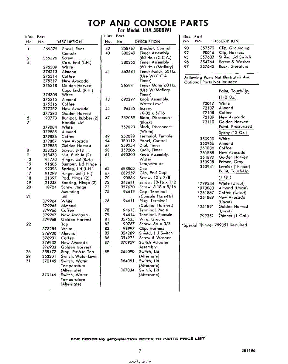 Parts for Whirlpool LHA5600W1: 07 - Section Parts