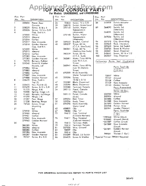 Parts for Whirlpool LHA5800W0: 05 - Section Parts