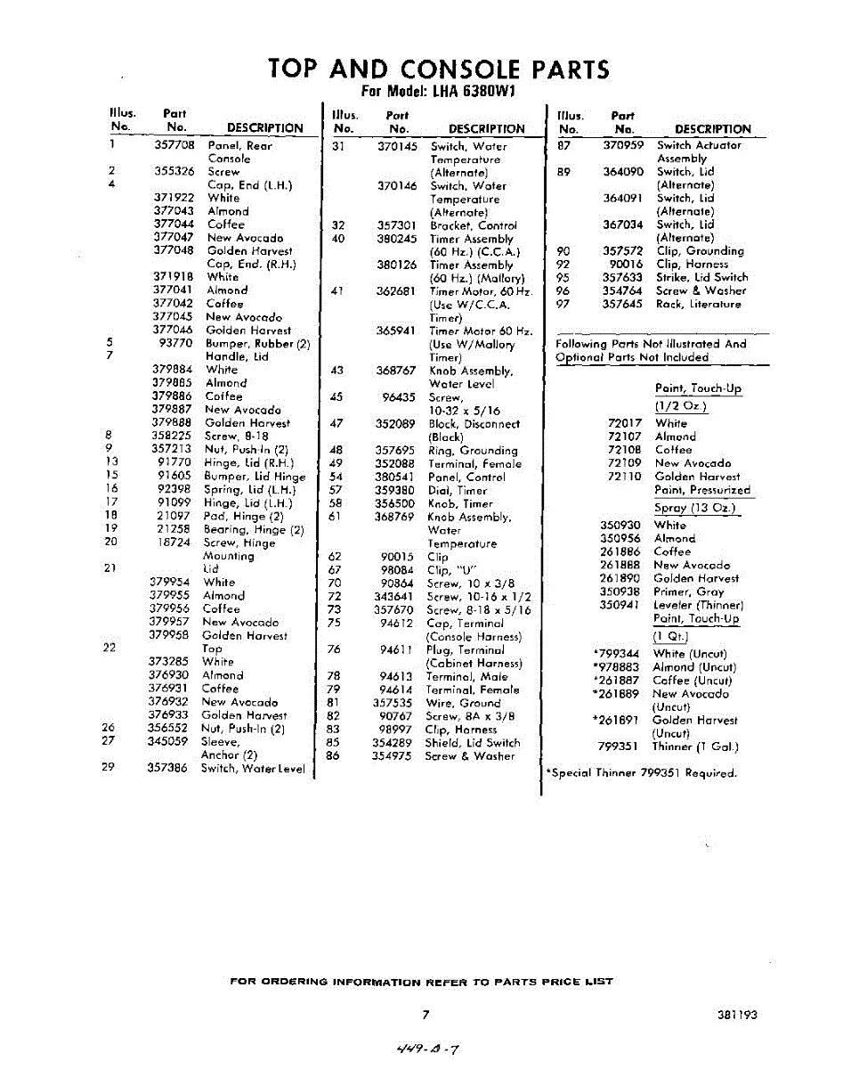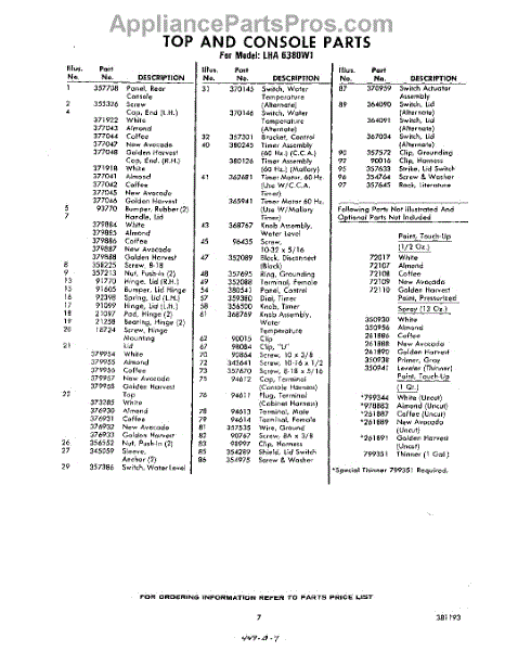 Parts for Whirlpool LHA6380W1: 07 - Section Parts
