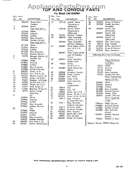 Parts for Whirlpool LHA6400W1: 07 - Section Parts