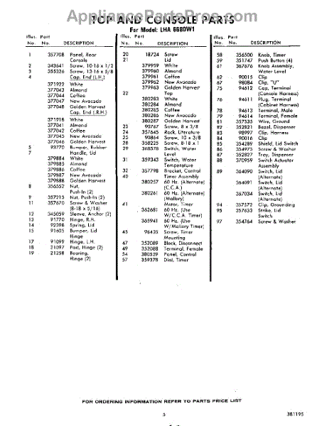 Parts for Whirlpool LHA6680W1: 05 - Section Parts