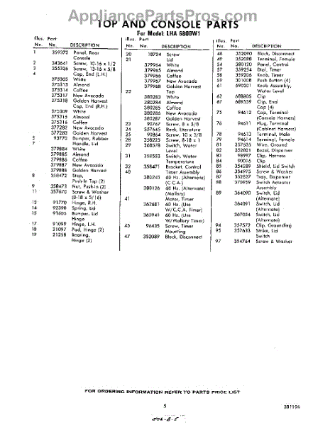 Parts for Whirlpool LHA6800W1: 05 - Section Parts