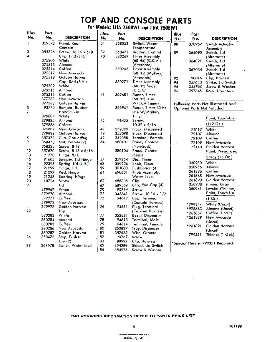 Parts for Whirlpool LHA7500W1: 05 - Section Parts