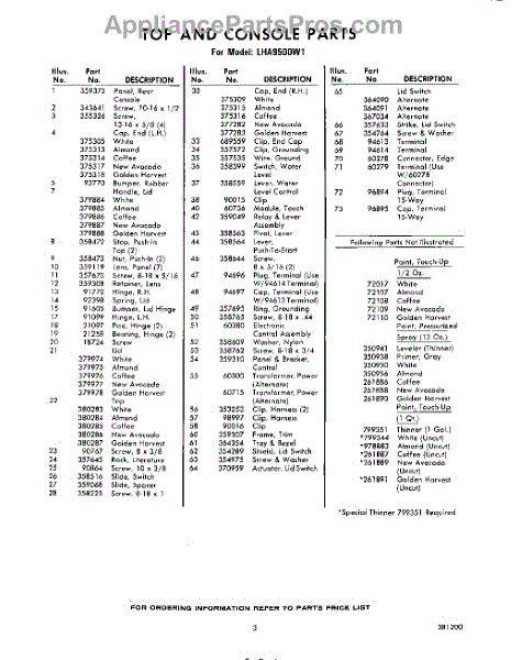 Parts for Whirlpool LHA9500W1: 03 - Section Parts