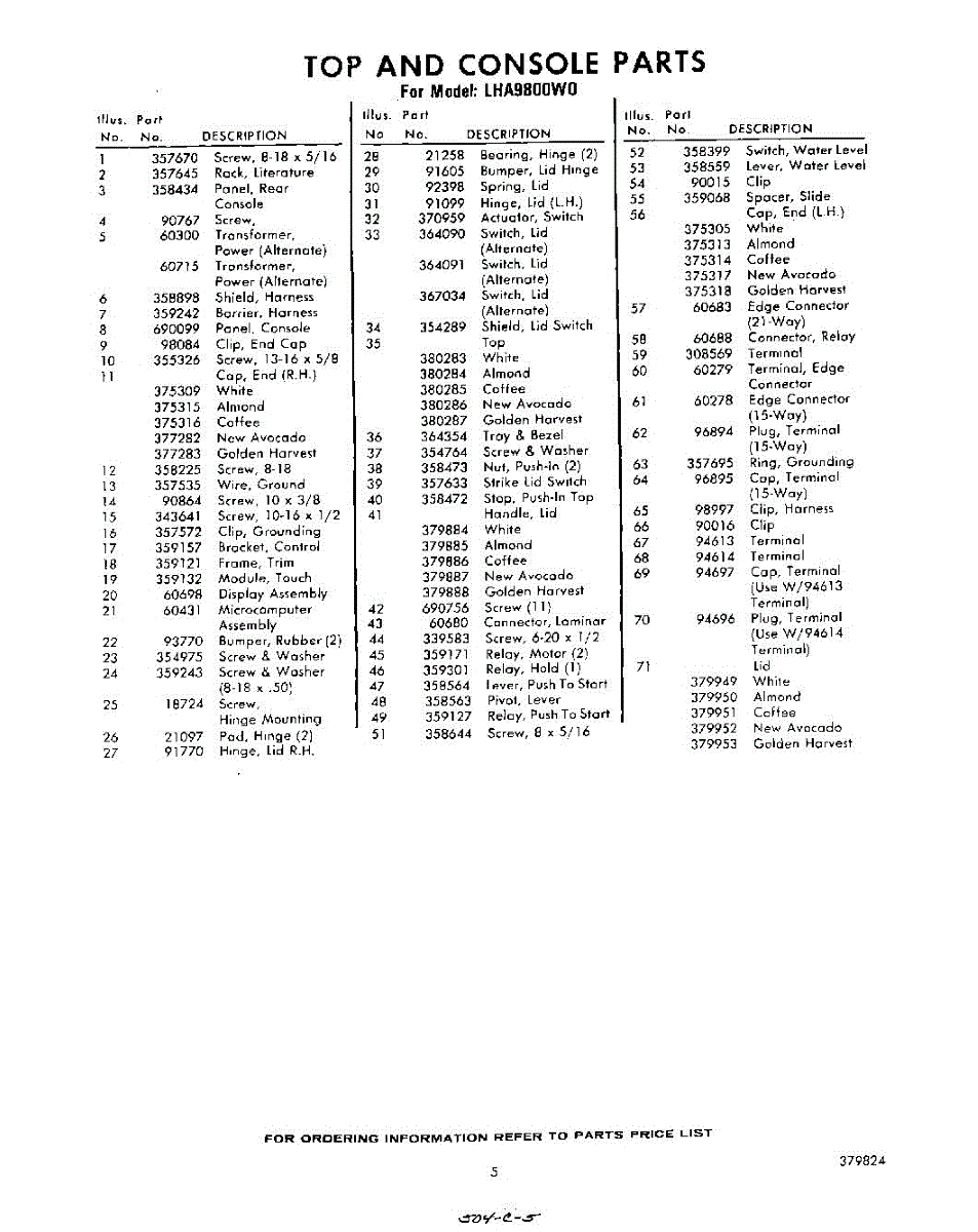 Parts for Whirlpool LHA9800W0: 05 - Section Parts