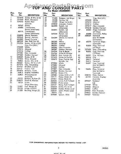 Parts for Whirlpool LHA9800W1: 05 - Section Parts