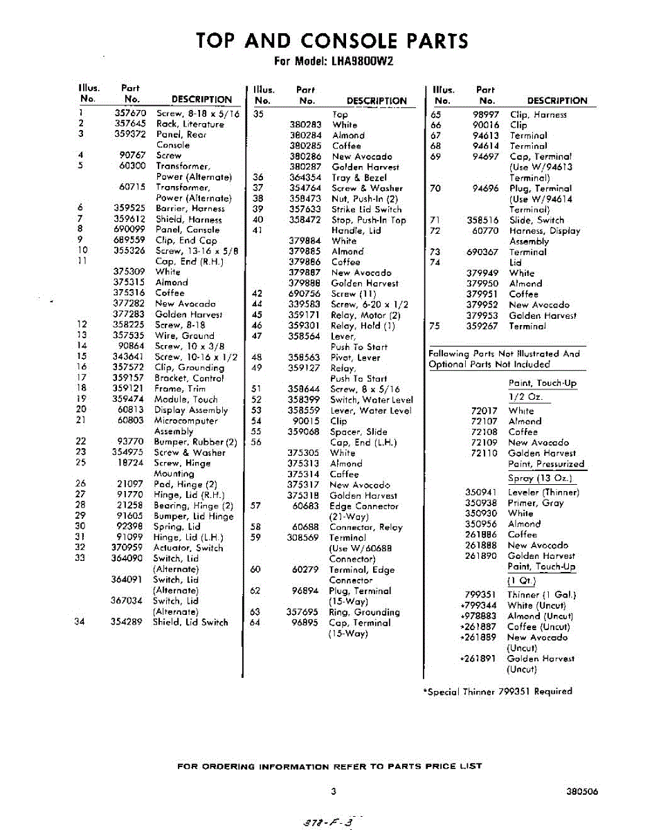 Parts for Whirlpool LHA9800W2: 03 - Section Parts
