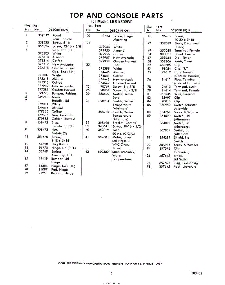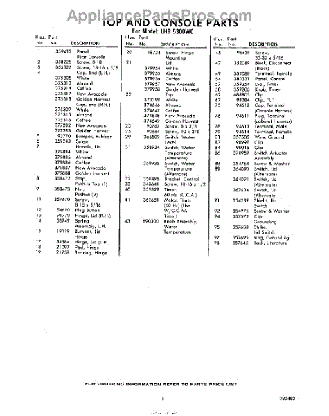 Parts for Whirlpool LHB5300W0: 05 - Section Parts