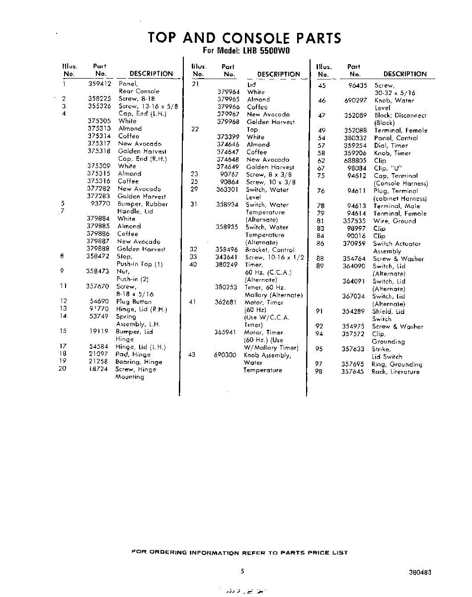 Parts for Whirlpool LHB5500W0: 05 - Section Parts