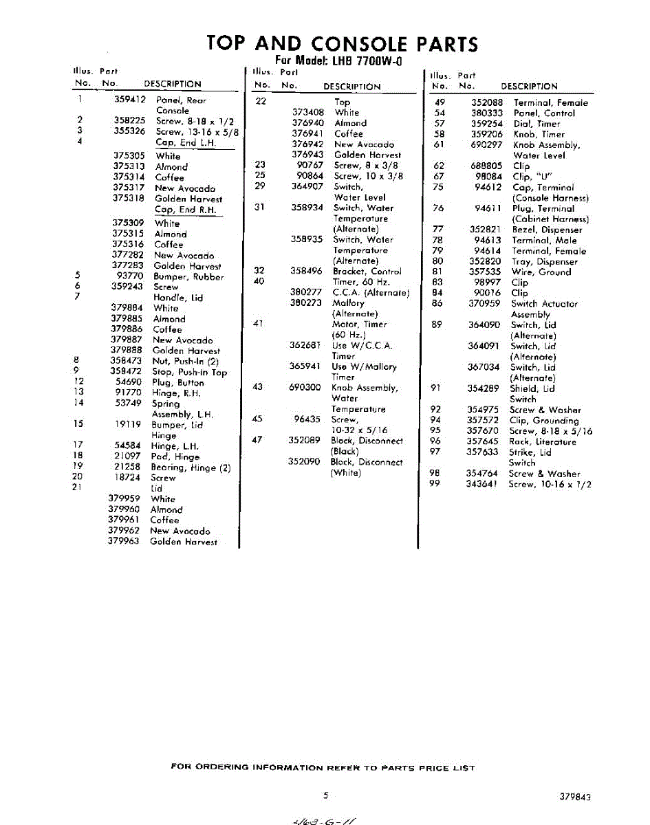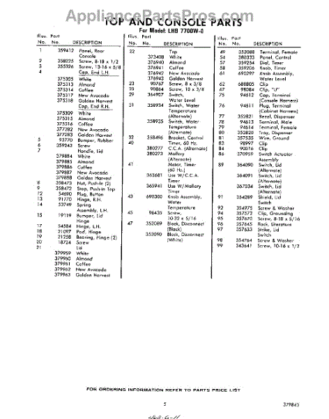Parts for Whirlpool LHB7700W0: 05 - Section Parts