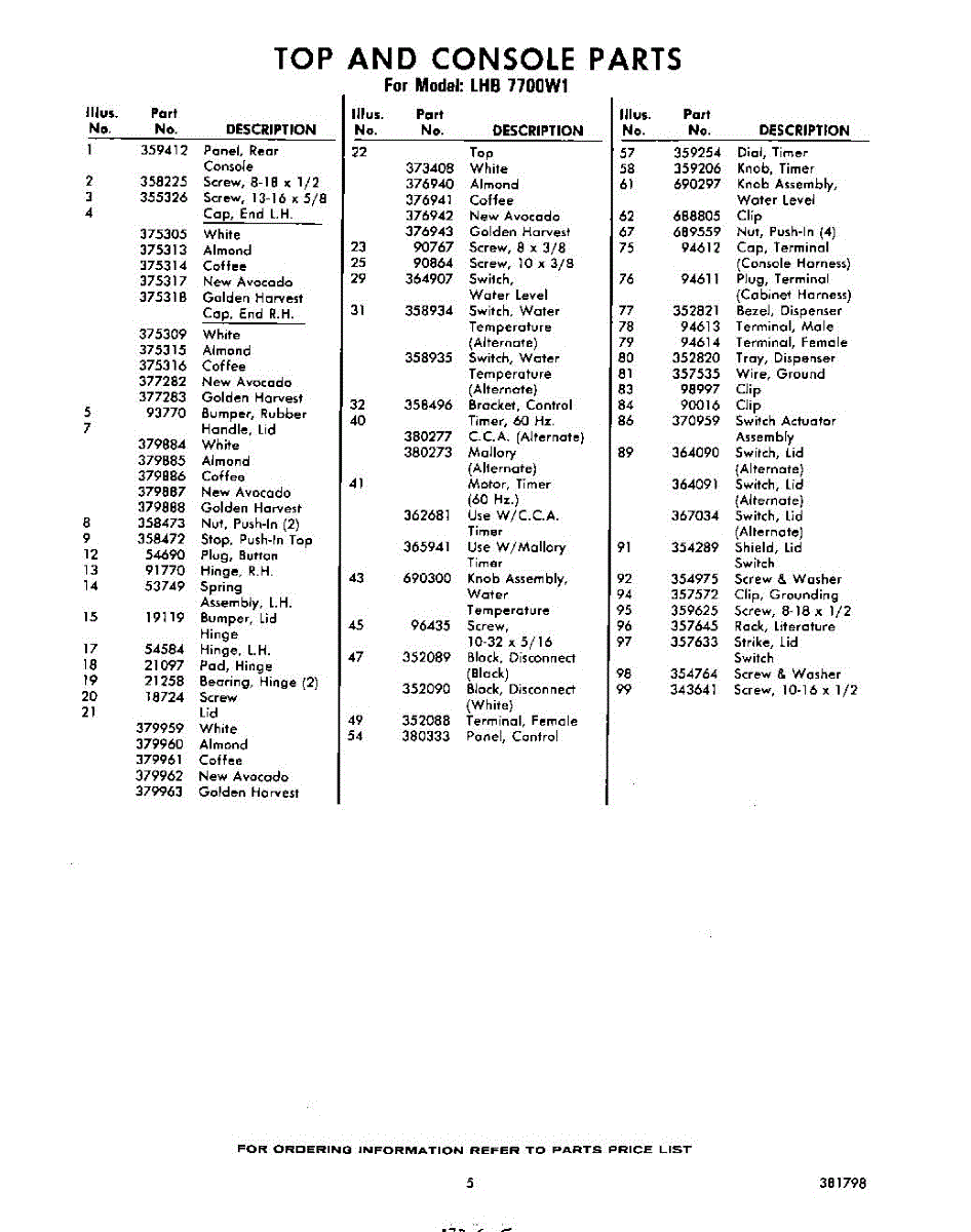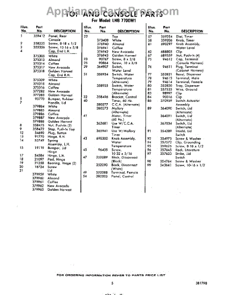 Parts for Whirlpool LHB7700W1: 05 - Section Parts
