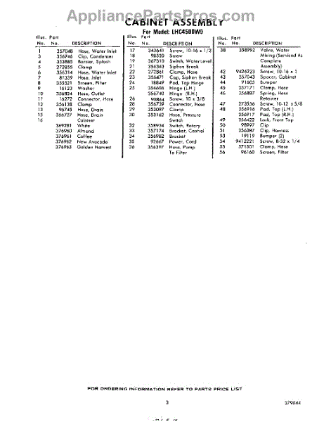 Parts for Whirlpool LHC4500W0: 03 - Section Parts