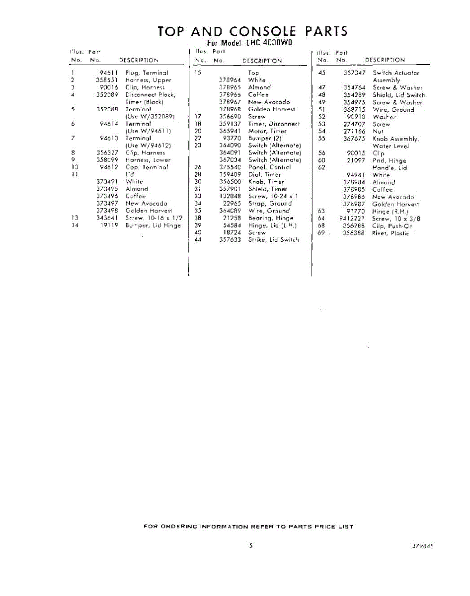 Parts for Whirlpool LHC4600W0: 05 - Section Parts