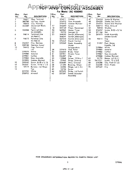 Parts for Whirlpool LHC4900W0: 05 - Section Parts
