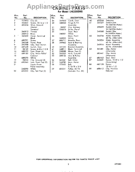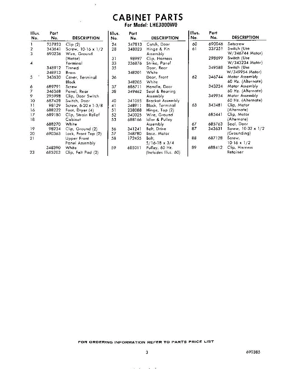 Parts for Whirlpool LHE3000W0: 03 - Section Parts