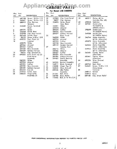 Parts for Whirlpool LHE6400W0: 03 - Section Parts