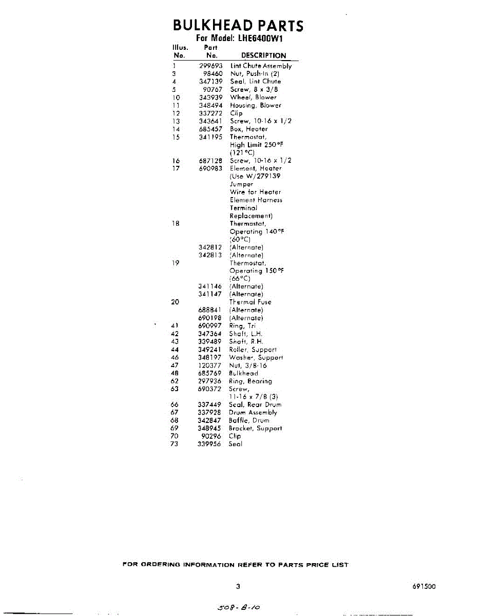 Parts for Whirlpool LHE6400W1: 03 - Section Parts