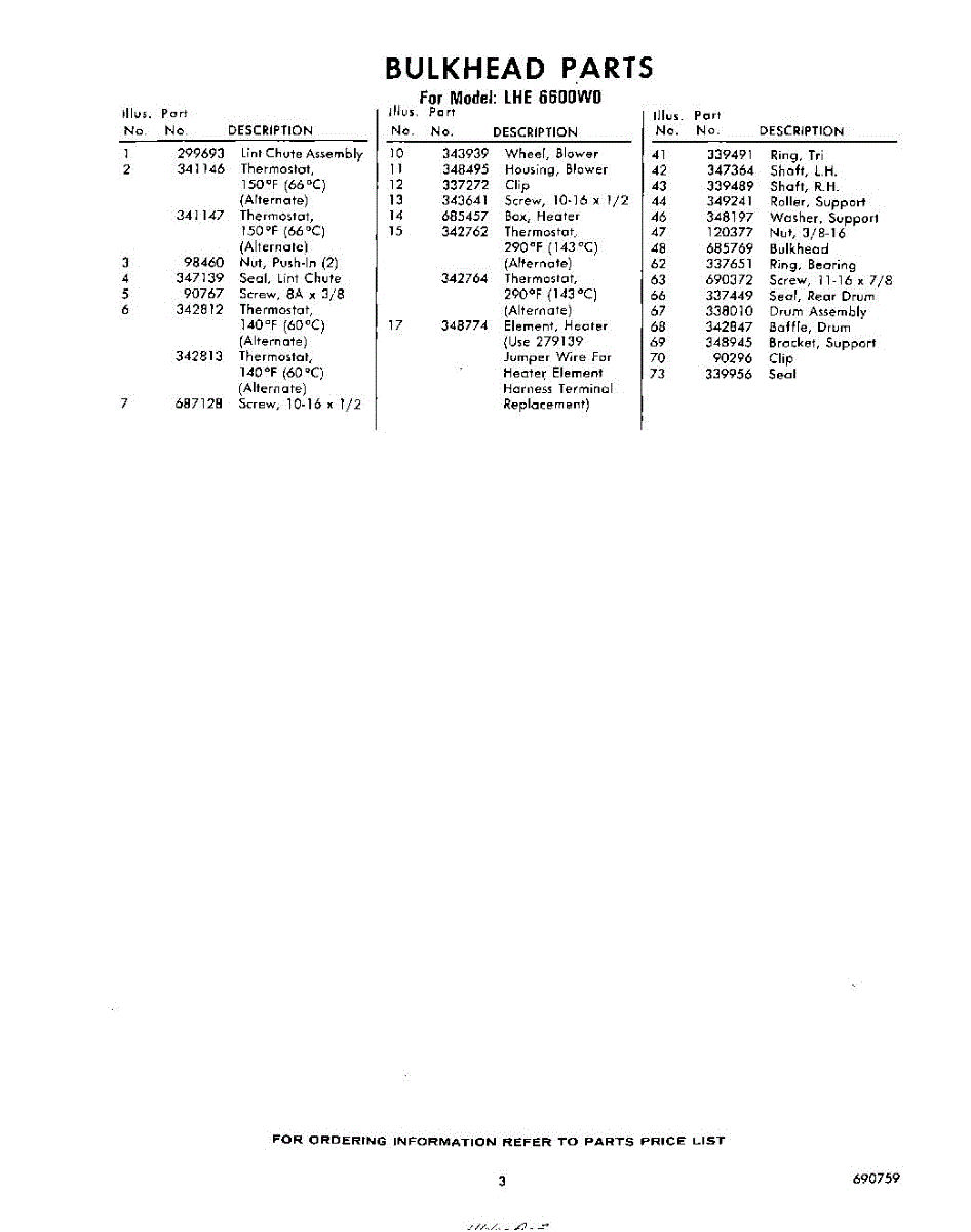 Parts for Whirlpool LHE6600W0: 03 - Section Parts