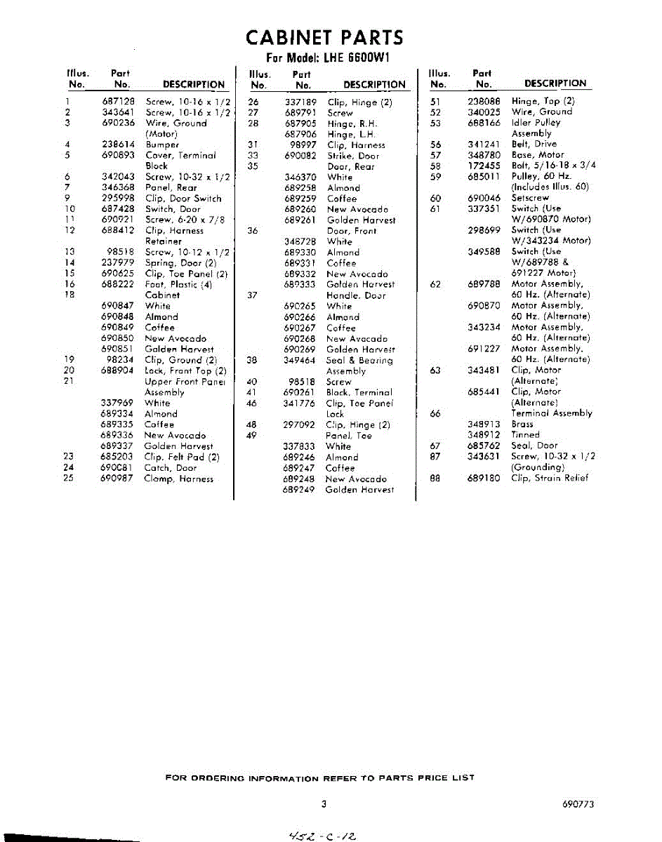 Parts for LHE6600W1