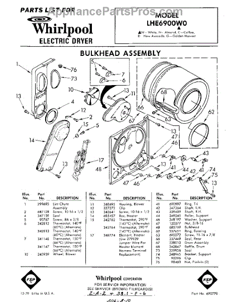 Parts for Whirlpool LHE6900W0: 01 - Section Parts