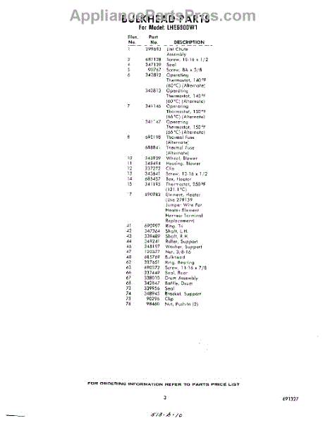 Parts for LHE6900W1