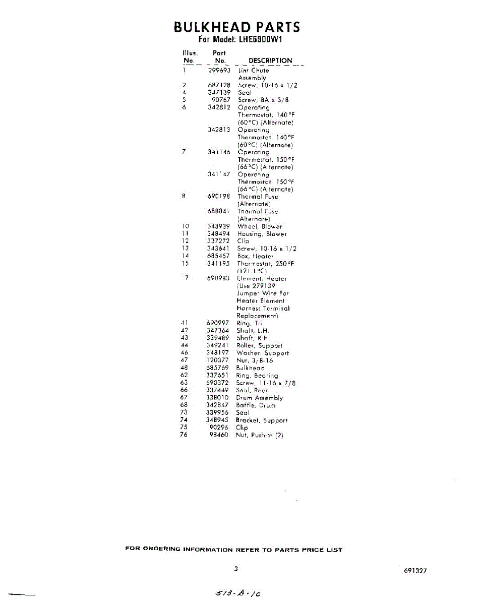 Parts for Whirlpool LHE6900W1: 03 - Section Parts