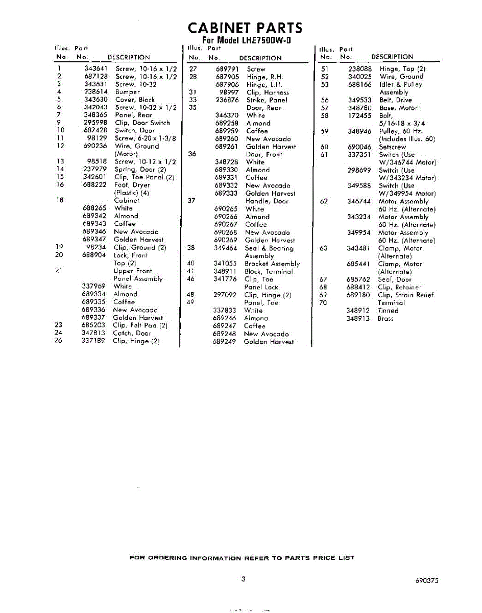 Parts for Whirlpool LHE7500W0: 03 - Section Parts