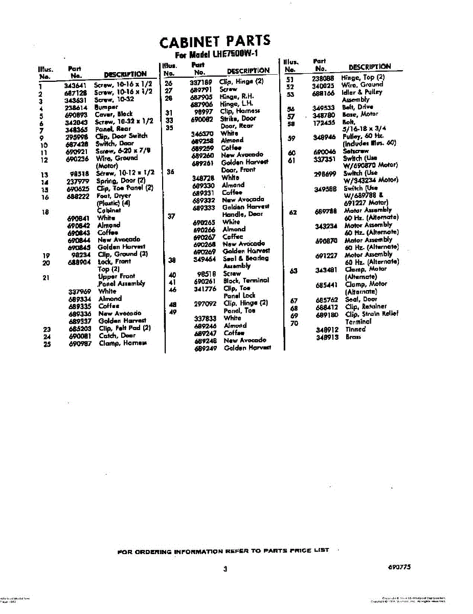 Parts for Whirlpool LHE7500W1: 03 - Section Parts