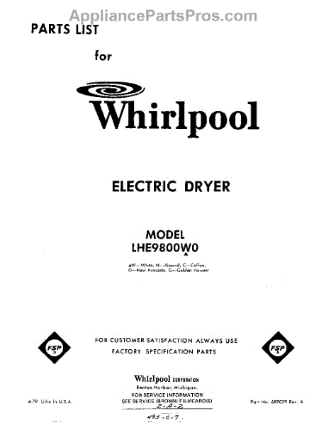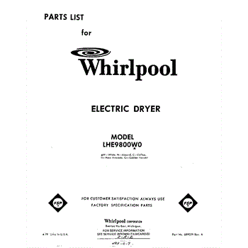 Parts for Whirlpool LHE9800W0: 01 - Section Parts