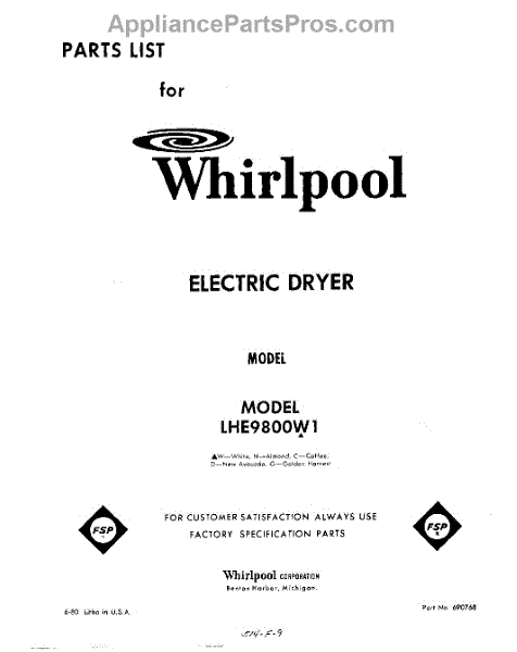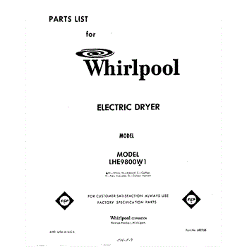 Parts for Whirlpool LHE9800W1: 01 - Section Parts