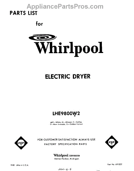 Parts for LHE9800W2