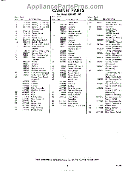 Parts for Whirlpool LHI6601W0: 05 - Section Parts